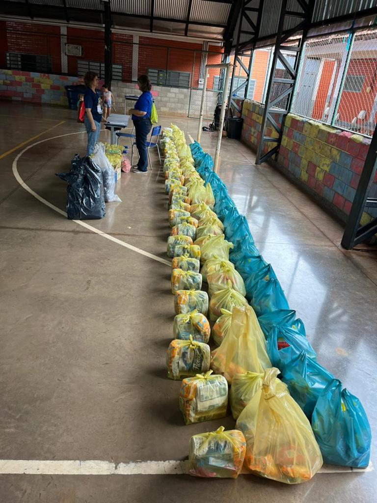 A primeira frente é Pessoas, com foco no apoio direto às famílias, promoção da segurança alimentar e realização de ações coletivas que fortalecem o cuidado social. Nesse eixo, o projeto alcançou resultados expressivos, com a arrecadação de mais de 1 tonelada de alimentos, beneficiando diretamente mais de 800 famílias por meio de doações organizadas.